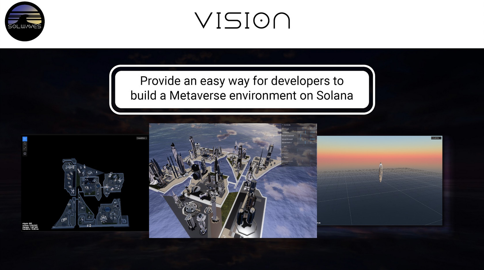 Solwaves is a new 3D technology for the Metaverse and Web3. With Solwaves it is possible to create your place in the Metaverse in less then 1 hour with Javascript or Typescript. Solwaves is connected to the Solana blockchain If the user likes it is possible login with Solana. Solwaves was created at the Solana Grizzlython. The project is in active development.